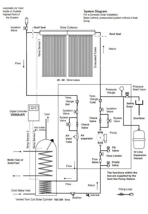 This is used when commissioning, to flush the system and subsequently fill with Heat Transfer Fluid (Solar Antifreeze). A pressure pump such as a garden pressure spray can be attached to pressurise the system.