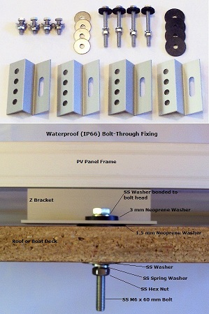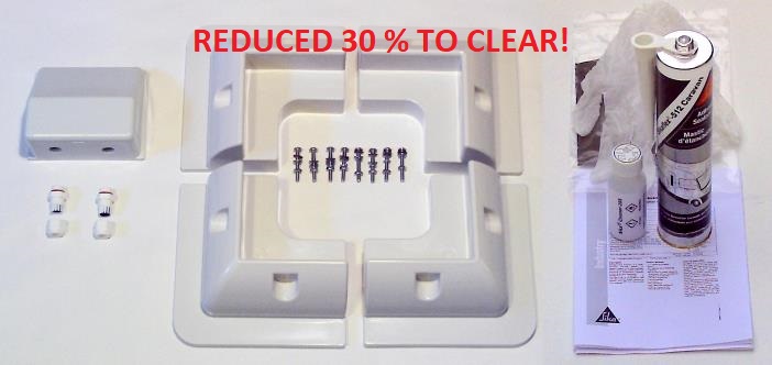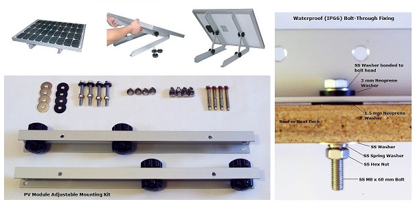 The Kit consists of 4 strong Aluminium alloy brackets, and 2 sets of corrosion proof fasteners.